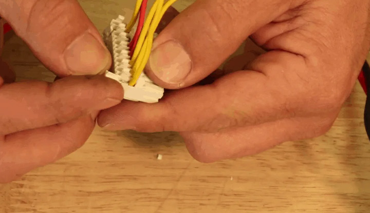 • Maintenant que la place est libre, insérez le fil en bon état dans l’espace qui lui est réservé sur le connecteur,